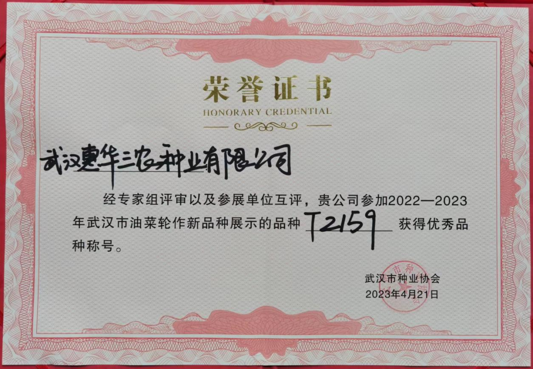 由武漢(hàn)市農業農村局指導,武(wǔ)漢(hàn)市農業技術推廣中(zhōng)心主(zhǔ)辦,武漢市種業協會、武漢農學會等單位承辦的武漢油菜新(xīn)品種現場觀摩會,4月21日在武漢市蔡甸區張灣街華英村油菜展(zhǎn)示(shì)基(jī)地舉行(háng)。經過專家的嚴格評(píng)分,中雙18、陽光50、華油雜115R、楚雜777、中油雜28、金油雜9號、中油雜19、碩油717、T2159、大地199被評為(wéi)2022—2023年度武漢十大優秀油菜品種。